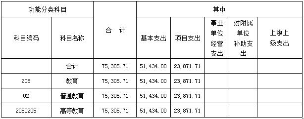 2016年财务支出75305.71万元,较2015年增加7455.55万元,按功能分类,全部用于高等教育,其中: