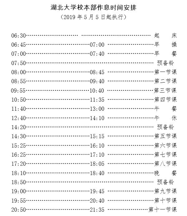 六、从5月5日(星期日)起,校本部执行新的作息时间。下午上班(课)时间调为14∶30,下班时间调为17:40。请各单位于4月30日前通知到全体教职员工和学生。通识教育学院作息时间不作调整。