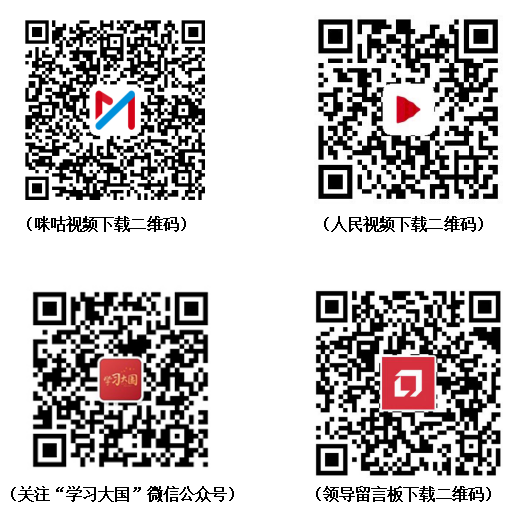 手机、平板:扫描二维码,或应用商店下载人民智云、咪咕视频、人民视频、领导留言板,关注“学习大国”微信公众号。