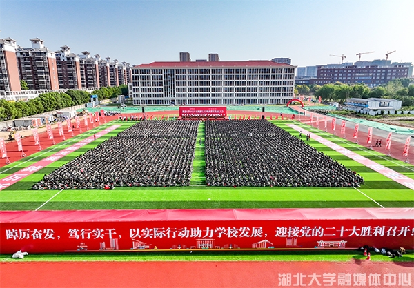 “谨记湖大校训,日思日睿、笃志笃行;秉承湖大精神,自强不息、克难奋进。立德修身、勤学善为,知行统一、励志成才。做时代新人,为实现中华民族伟大复兴而努力奋斗!”在新投入使用、占地面积约1.6万平方米的400米标准化田径运动场上,大学新生们面向未来,庄严宣誓。