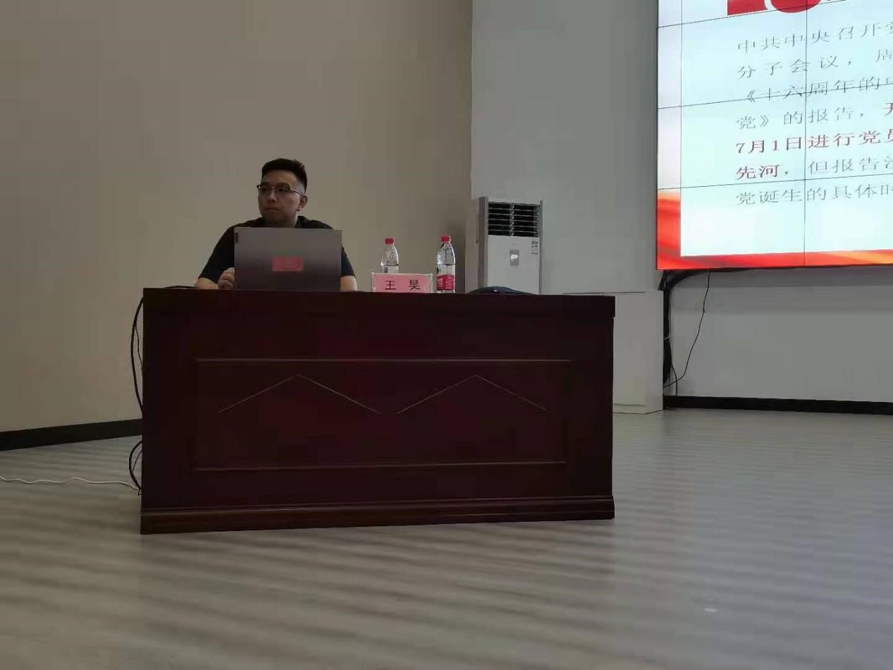 王昊博士以《赓续红色血脉,开创美好未来》为题,从"一去不复返"到"不可逆转"的百年辉煌"、实现中华民族伟大复兴第二个百年奋斗目标的政治宣言、实现第二个百年奋斗目标必须高扬伟大建党精神等方面,对如何弘扬伟大建党精神、践行初心使命作了全面深入地讲解。