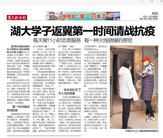【楚天都市报】湖大学生每天做11小时志愿服务