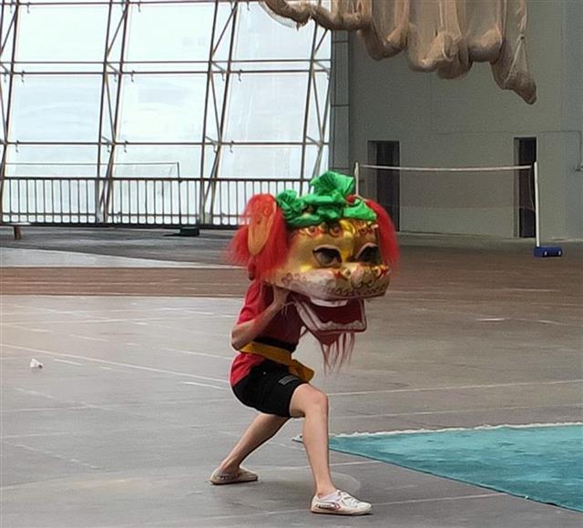 学习中文期间,马飞龙偶然看到了一张湖大龙狮团的表演照片。在巴西就学过舞狮又有武术基础的他当即打听,于去年9月加入了该校龙狮团。跃身、抬头……他坚持每周参加三次训练,最基本的动作也反复练习,常常练得汗流浃背。但他并不觉得训练很苦,反而从中找到了乐趣。“基本功扎实,就可以让舞狮动作变得更灵活。”队友休息时,他也时常一个人手举狮头练习。他希望早日练成翻滚、跃起、抢狮球的连环动作,日后和师哥师姐一起参加正式的舞狮演出。