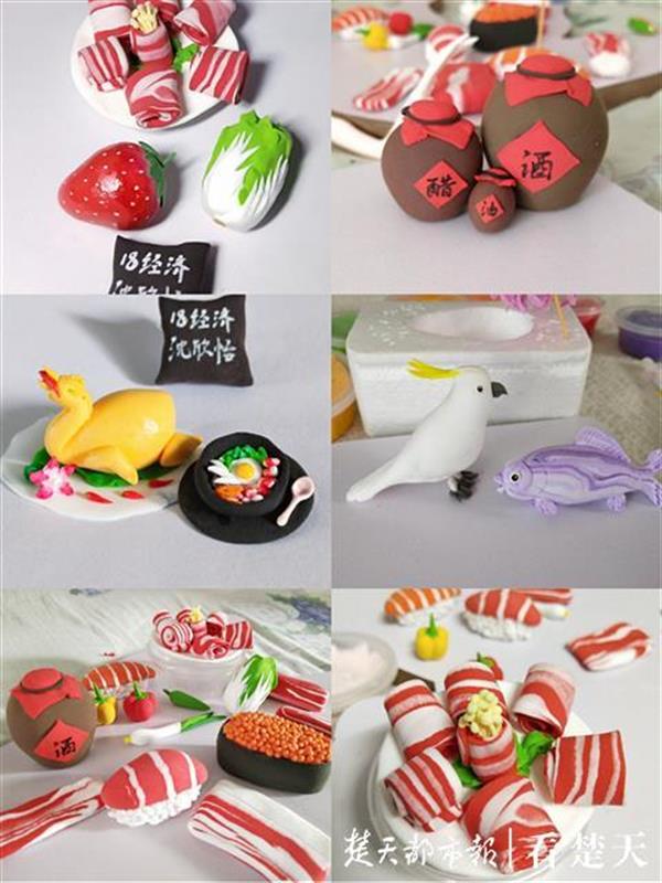 不爱刷微博、看抖音,比起玩手机,沈欣怡更喜欢把业余时间用在做手工上。沈欣怡从小便喜欢做手工,是个不折不扣的“动手党”。受疫情影响,本学期她选修的现代陶艺课,期末作业改成了自主创作纸黏土作品。物流刚恢复,她便迫不及待购买了材料,跟着网上的视频教程慢慢摸索。仅5月份一个月,她便制作了40余件精致的黏土作品。