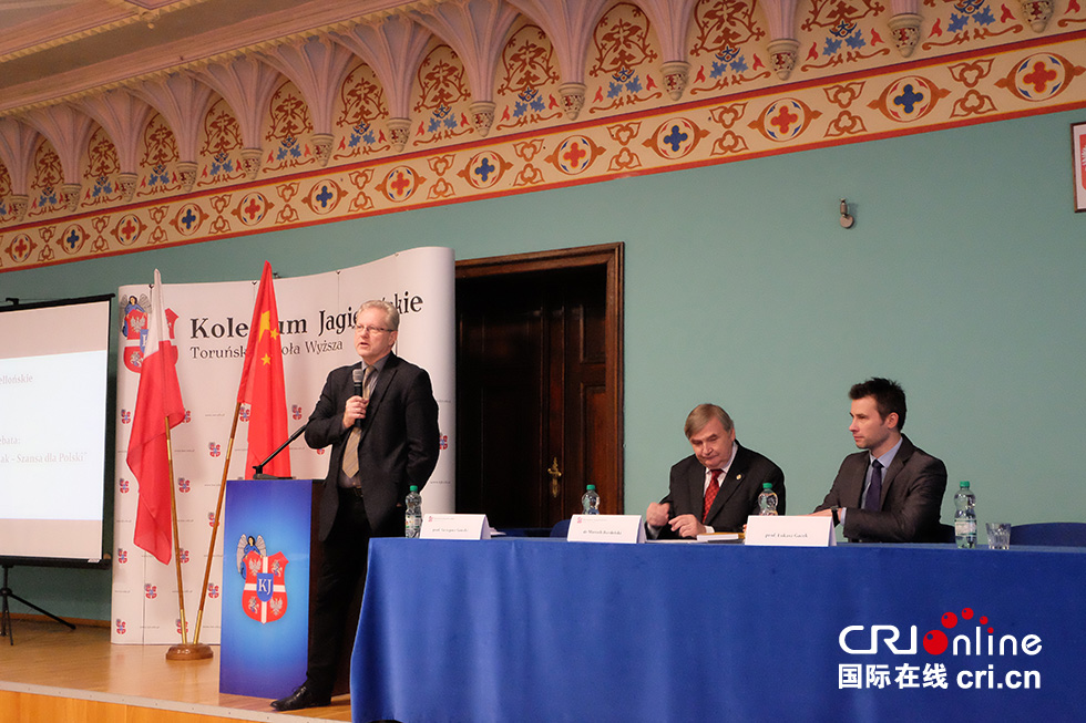 国际在线报道(记者 汤黎)波兰托伦雅盖隆学院孔子课堂于当地时间10日在雅盖隆学院举办了“新丝绸之路背景下的中波机遇和挑战”研讨会。波兰克拉科夫雅盖隆大学中东和远东研究所驻中国处负责人噶采克副教授、雅盖隆学院孔子课堂理事长布尔戴尔斯基博士、雅盖隆学院孔子课堂外方院长古尔斯基教授出席并发言。雅盖隆学院的学生和来自托伦的学者等参加了此次研讨会。