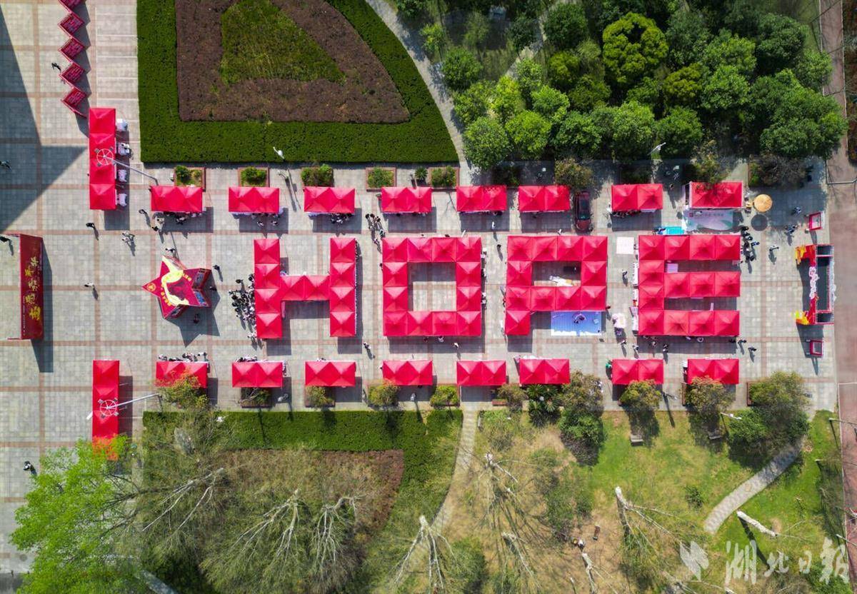 活动现场的展位,俯瞰构成“HOPE”字样。该校青年志愿者协会联合20多个学院的青年志愿者行动指导中心,策划了各具特色的项目,不少学院设计的游戏互动和志愿服务体验还凸显了专业特色。