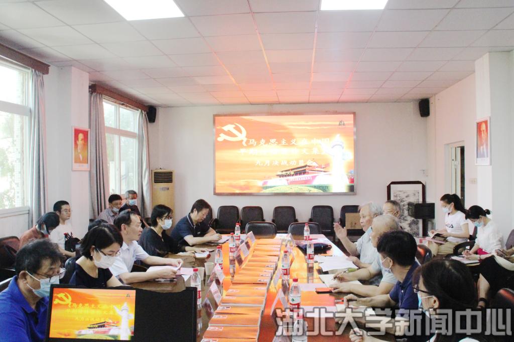 丛书首席专家、主编田子渝教授介绍了《文集》编纂情况,湖北省社会科学院原院长曾成贵研究员、华中师范大学马克思主义学院李良明教授、湖北人民出版社总编辑姚梅、我校马克思主义学院党委书记汤德森和学校社科处处长邵俊青分别表示,将全力以赴参与支持《文集》的编纂出版,并对这部献礼建党100周年的精品之作表达了期待。